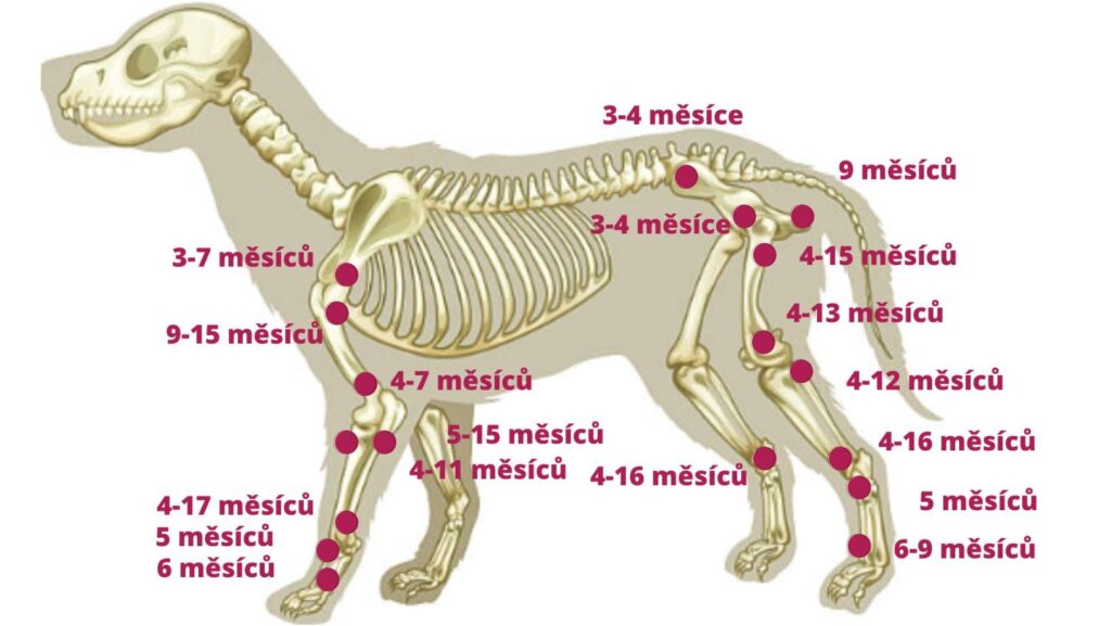 Realita je mnohem složitější. Kosti štěňat rostou v místech tzv. růstových plotének, které jsou extrémně citlivé na zátěž. Tyto ploténky jsou tvořeny chrupavkou a jsou aktivními místy buněčného dělení. Během růstu se nové buňky neustále tvoří, zatímco starší buňky se postupně mineralizují a stávají se kostí. Tento proces umožňuje kostem prodlužovat se a růst. Jakmile je dosaženo určitého věku, růstové ploténky postupně zanikají a chrupavka se mineralizuje na kost. Doba uzavírání plotének se u jednotlivých kostí v těle liší. Proto je extrémně důležité štěně v období růstu nepřetěžovat dlouhými túrami nebo náročnými výlety. Obdobně je to i se psími sporty. S plnou sportovní zátěží doporučuji počkat do roku a půl! V mezičase můžete daný sport štěněti bezpečně představovat. Vědomý a vzdělaný trenér vás provede celým procesem a pomůže vám zajistit zdravý vývoj vašeho štěněte.